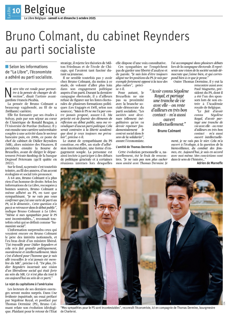 J'étais admiratif du modèle néolibéral américain, et c’est pour cela que j’ai suivi tant d’études aux États-Unis. Mais le krach de 2008, que j’ai vu du haut de la Présidence de la Bourse de Bruxelles, et surtout du Comité de direction de la Bourse de New York, m’a marqué au fer rouge.