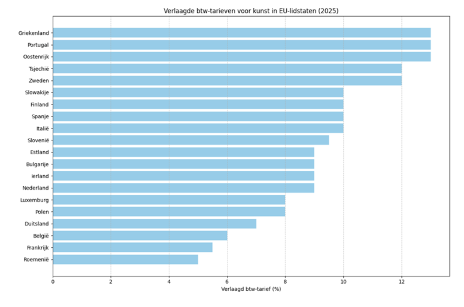 La Belgique a tiré parti de cette possibilité en introduisant un taux réduit de 6% pour l’achat et l’importation d’objets d’art, de collections et d’antiquités. Concernant spécifiquement l’art, ce taux réduit ne s’appliquait auparavant qu’aux achats directs auprès de l’artiste et à l’importation d’œuvres achetées directement à l’artiste en dehors de l’UE. Les achats réalisés dans une galerie d’art ou en salle des ventes étaient quant à eux soumis au taux normal de 21%.