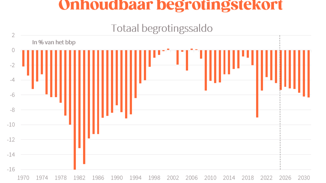 Bien que cela ne semble plus vraiment faire débat dans l’espace public, les nouvelles perspectives du Bureau du Plan soulignent douloureusement la gravité de la situation de nos finances publiques. Même avec les mesures fédérales prises, contre lesquelles il y a eu grèves et manifestations, toutes nos entités publiques sont en voie d’atteindre un déficit budgétaire conjoint de 5,7 % du PIB à la fin de cette législature, nettement plus élevé qu’au début de celle-ci. Et les années suivantes, le déficit continuera simplement d’augmenter (jusqu’à 6,3 % en 2031). La dette publique s’élèverait alors à 122 % du PIB en 2031 (contre 104 % en 2024).