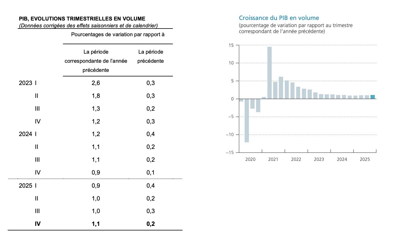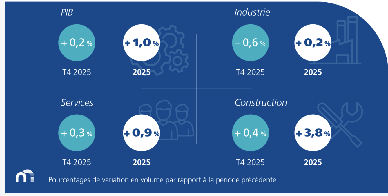Sur l’ensemble de l’année 2025, le PIB s’est accru de 1,0 %. Par rapport à 2024, la valeur ajoutée a augmenté