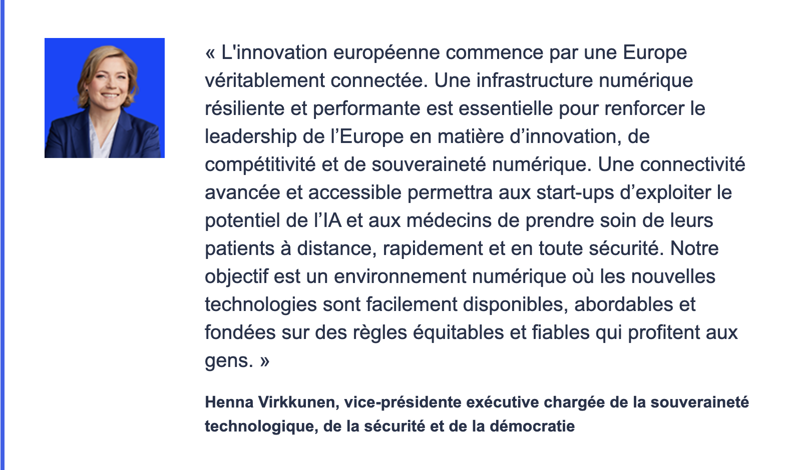 Dans son discours sur l'état de l'Union de 2025, la présidente von der Leyen a souligné la nécessité de faire progresser le marché unique de la connectivité d'ici à 2028 et a encouragé les investissements dans les technologies transformatrices.