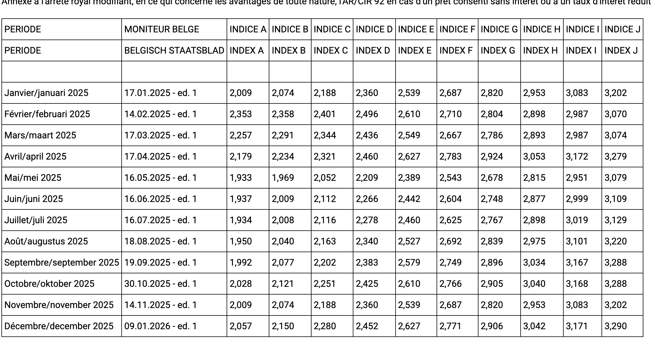 La liste des taux de référence est publié chaque mois au Moniteur Belge.