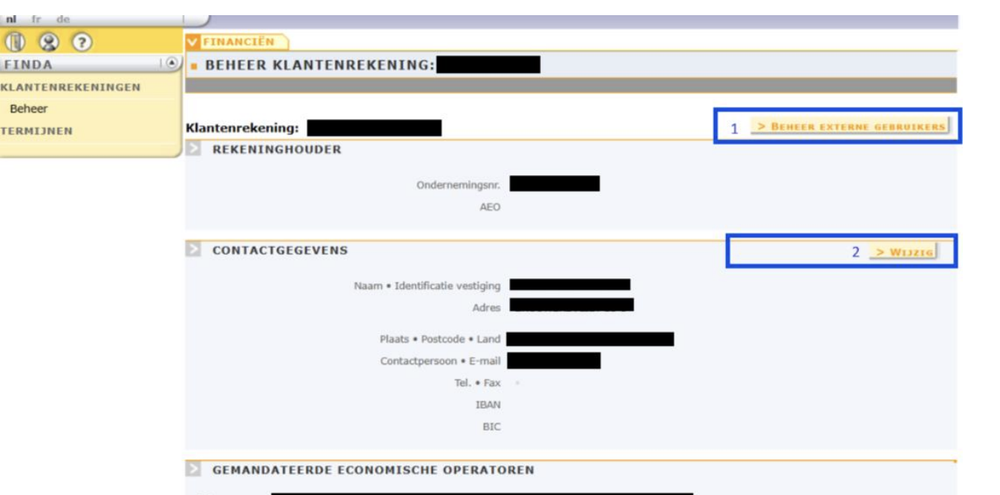 Het betreft het beheer van externe gebruikers, de contactgegevens en de gemandateerde economische operatoren.