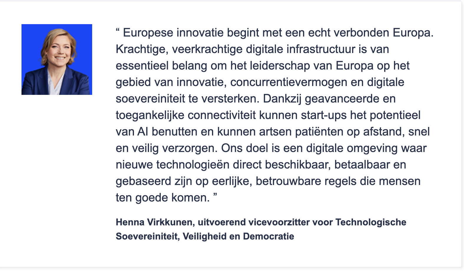 In haar toespraak over de Staat van de Unie 2025 benadrukte voorzitter Von der Leyen dat de eengemaakte markt voor connectiviteit tegen 2028 moet worden bevorderd en moedigde zij investeringen in transformatieve technologieën aan.