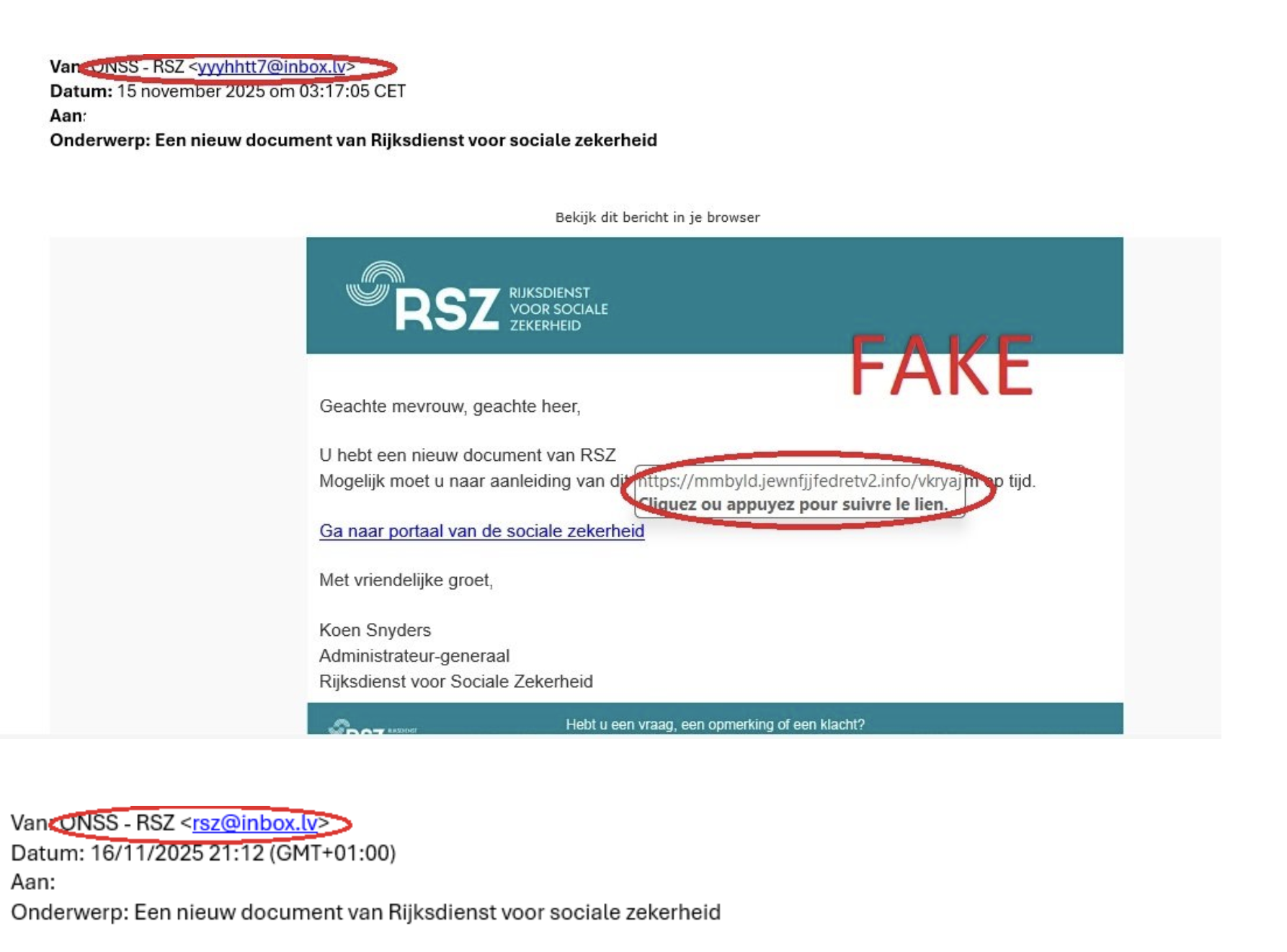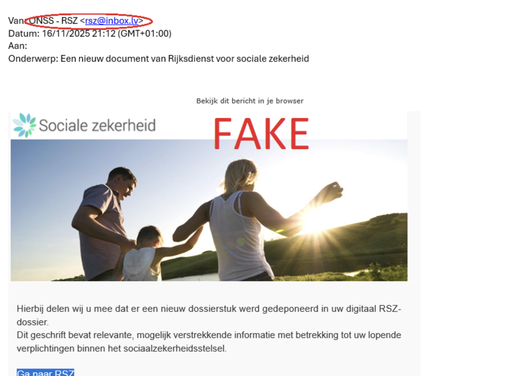 Het e-mailadres van de afzender komt helemaal niet overeen met dat van de RSZ