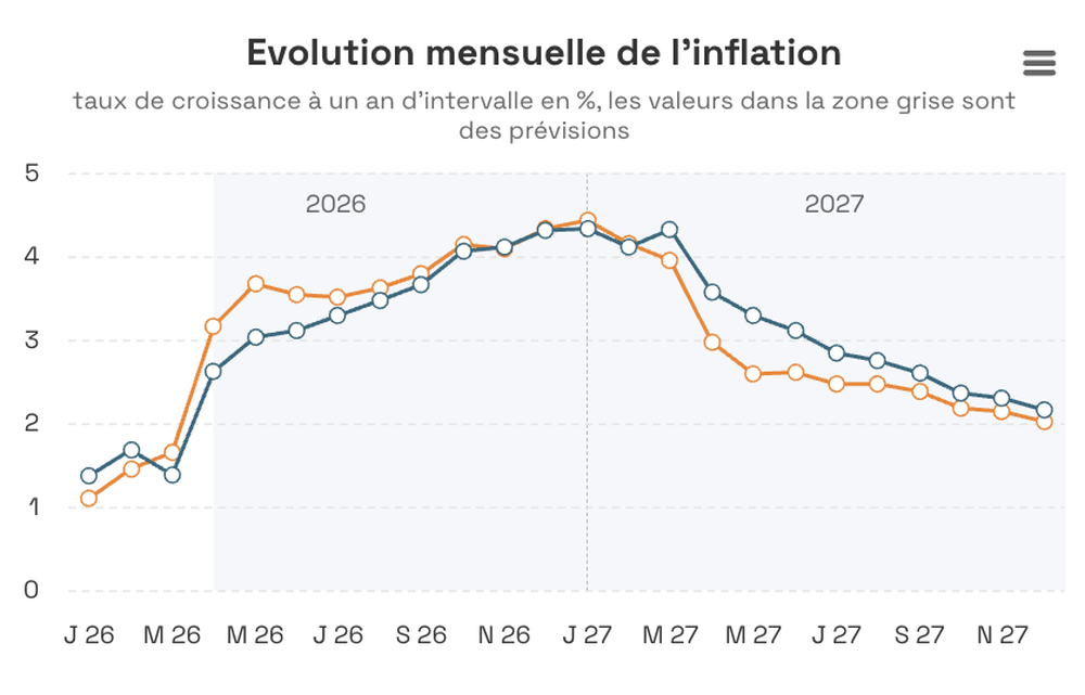 Inflatie: gemiddeld 3.2% in 2026 en 2.9% in 2027, tegenover 2,47% in 2025 en 3,14% in 2024.