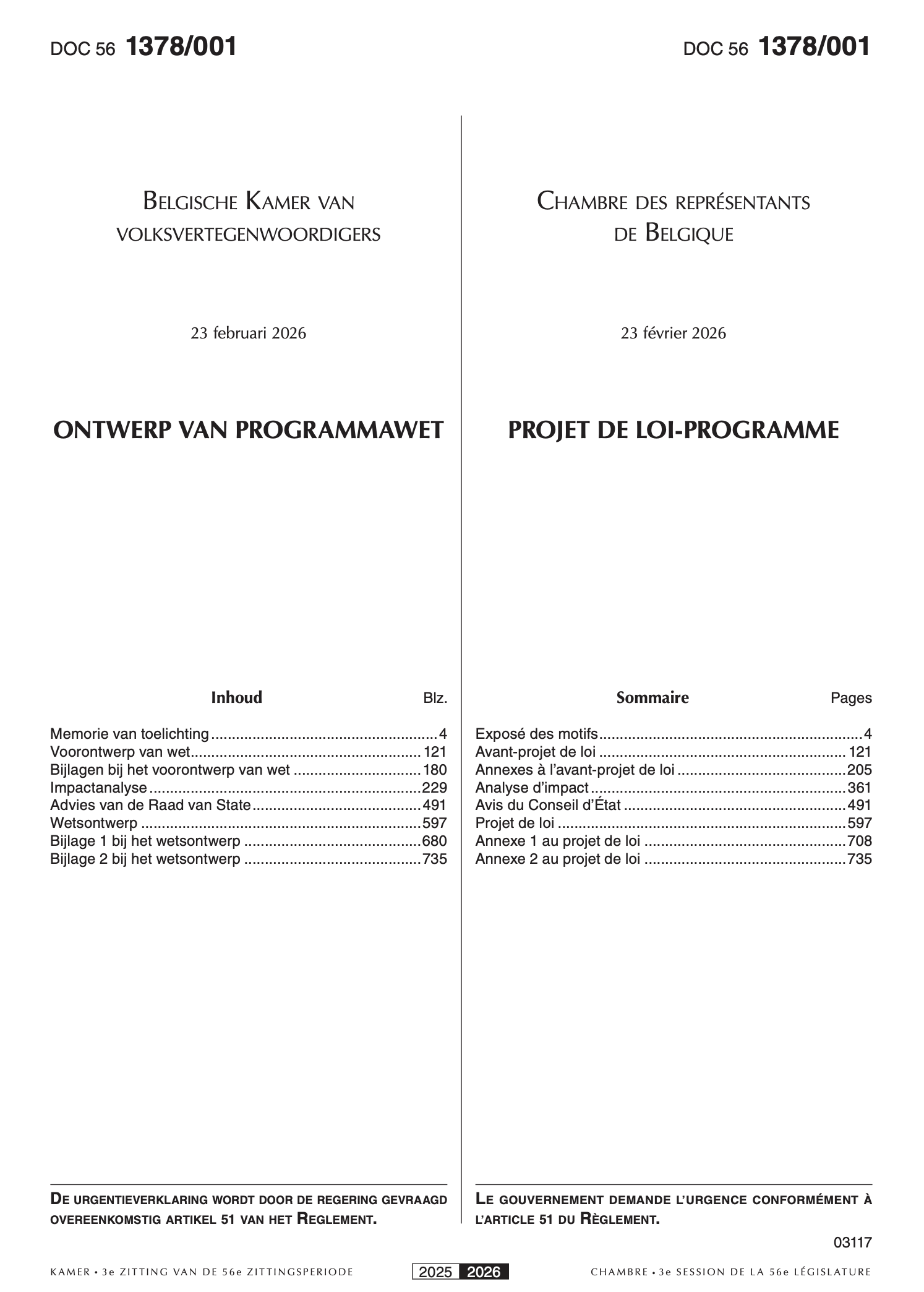 Programmawet op 23 februari ingediend bij de Kamer !